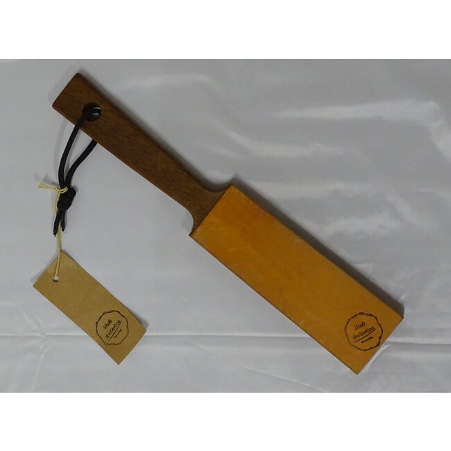 Made by Mieke lässt sich von allem inspirieren, was ihr in die Quere kommt. Holz, Leder und andere Materialien sind die Grundlage für die Produkte, die alle wiederverwendet werden und nachhaltig sind. Das Holz des Paddelriemens ist aus Eichenholz und das Leder ist Sattelleder.
