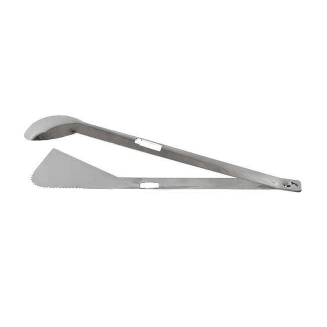 Die Pathfinder-Edelstahlzange ist ein multifunktionales Set, bestehend aus einem Göffel und einem Spatel, die zu einer Zange zusammengefügt werden können.