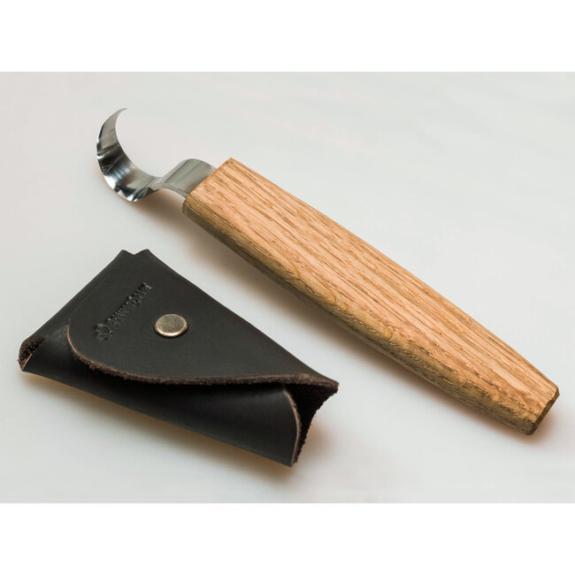 This BeaverCraft SK1 Oak Spoon Knife is a refined and enhanced version of the classic SK1 hook knife designed for carving spoons, bowls, kuksa, or other projects with rounded edges or to add some detail to your workpiece. The rounding diameter of the knife is 25 mm, which is perfect for small products.