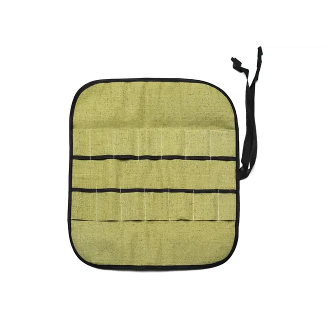Dit model heeft 12 vakken en een trekkoord. Ideaal als je alleen het hoognodige mee wilt nemen. Met de lichtgewicht tool roll heb je snel toegang tot het gereedschap en de uitrusting die je nodig hebt. Hij heeft voldoende handige vakken voor het opbergen van je houtsnijmessen en benodigdheden in verschillende vormen.